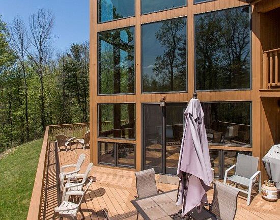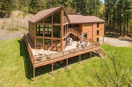 A CATSKILL PREMIER LISTING: This striking 7,000 sq ft . . . 3-level CUSTOM-DESIGNED LUXURY MODERN HOME, just minutes from COOPERSTOWN (America's most PERFECT VILLAGE) . . . on a 21.5 PRIVATE ACRE SETTING, features the ultimate in DRAMATIC LIFESTYLE AMENITIES. LIFESTYLE HIGHLIGHTS include: a 28' tall GREAT ROOM with soaring STACKED STONE GAS FIREPLACE and flanking FLOOR-to-CEILING WALLS of GLASS that open to matching ENTERTAINING DECKS; gourmet stainless CHEF'S KITCHEN with 12' long GRANITE ISLAND, 18' long GRANITE BREAKFAST BAR, 4-burner JennAire w/FRENCH COOK TOP, expansive CABINETRY and WINE FRIDGE; adjacent CAFÉ/BREAKFAST AREA opening to an exterior deck; 24' x 22' vaulted ceiling MASTER EN-SUITE with jetted SOAKING TUB, glass SHOWER, double GLASS VESSEL SINK vanity and private COVERED DECK; lower-level RECREATIONAL ROOM with POOL TABLE area; and . . . professional MOVIE THEATER with STADIUM LEATHER SEATING for 17 guests. Central A/C and full RADIENT HEAT are just a few of the many upgrades. This COUNTRY-MODERN ESTATE is perfect for the large family who enjoys GRAND ENTERTAINING, the recreational amenities of Cooperstown and motor boating on OTSEGO LAKE. In addition, this magnificent home offers incredible income with an IMPRESSIVE TURN-KEY RENTAL HISTORY: in excess of $9,000/summer week!