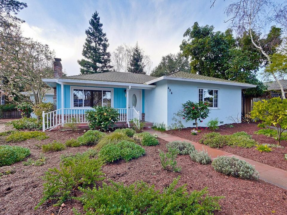 Set on a sought-after corner lot, the quiet home is surrounded by lush gardens with exciting possibilities. The charming front porch opens to an interior where hardwood floors, updated paint colors, and open-concept living offer style and charm, and each bedroom provides flexibility and comfort. A serene rear patio overlooks the private backyard, where mature citrus trees and a potential vegetable garden await you. Included is an attached two-car garage with half bath and wash sink. You will be near Rosita Park, grocery stores, Starbucks, and top private and public schools. Just minutes to multiple recreational areas and vibrant Downtown Los Altos. Plus, commuters will love easy highway access! Convenience, charm, and unlimited potential make this garden retreat truly irresistible.