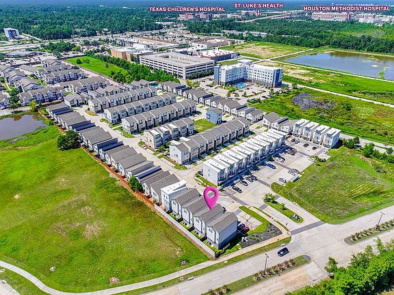 Rare live/work opportunity near The Woodlands! This 3-story property features a first-floor commercial office space with large front windows, a versatile back area with cabinets & sink (perfect for lounge or break room), and a convenient half bath for clients. The residential second and third floors offer over 1,500 sq. ft. of living space, including 2 bedrooms and 2.5 baths. The second floor boasts an open-concept layout with a spacious living room, dining area, kitchen with large island, pantry, included appliances, and half bath. The third floor includes a large primary suite with a huge walk-in closet and double sinks, plus a roomy secondary bedroom with its own private bath. Prime location near hospitals, restaurants, shopping, and all The Woodlands has to offer!