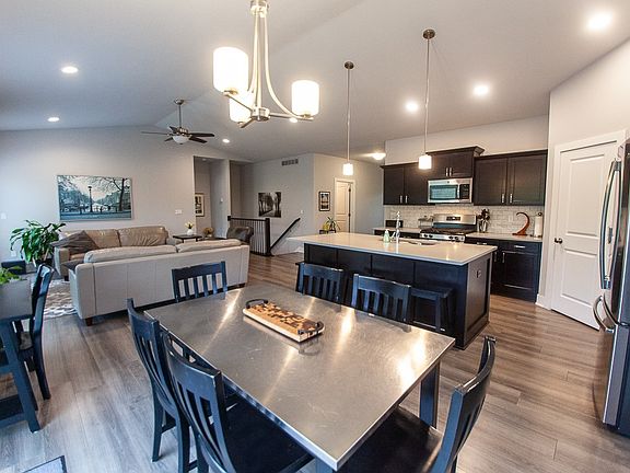 Beautiful "designer" walk-out ranch, built in 2018 by KRM Development a builder known for its quality construction and attention to detail. Over 2600 sq ft of finished living space backs to creek and trees. 4 BR, 3 baths, large deck and patio, floor to ceiling stone fireplace, kitchen has quartz countertops and stainless steel appliances. 1st floor mudroom and laundry. The W/D are negotiable. Huge FR with wet bar in LL. Heated 3 A garage. Nicely landscaped large lot with fenced rear yard. Perfect condition. Ready for the new owners to move in and love! Located in the award winning Van Meter school district in a desirably family friendly neighborhood.