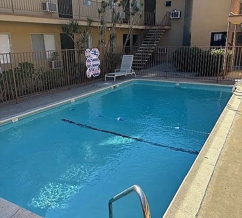 Sparkling poolUpstairs unitCloset spaceGreat natural lightBuilt in vanity