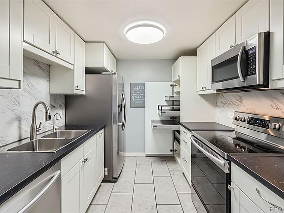 GREAT DEAL for this SE DENVER CONDO- TOP TO BOTTOM RENOVATION PLUS 2 DEEDED GARAGE SPACES! There are So Many New Features in this Property, Anticipate Very Low Renovation & Maintenance Costs. Great Proximity in South Denver, So Suburbs or Downtown too. Comes w 2 DEEDED CAR SPACES in Secured Garage so you wont be parking on the street. HOA Covers Heat & So Much More! The Great Room Shines w Newer Mohawk Graphite Gray Reclaimed Wood-look HQ Flooring, New Double Pane Windows, Brand New Electric Panel, LED Light Fixtures, Remote Controlled Brushed Nickel Ceiling Fan & Sherwin Williams Interior Paint Throughout. Allure Plush Attraction Gray HQ Carpet in Master & Secondary Bedrooms Both w New Double Pane Windows, New Ceiling Fans/Light Fixtures & Huge Closets. Kitchen is Like New! IKEA Kitchen Cabinets Plus Stainless Steel Samsung Appliance Pkg, Cosmo Black Laminate Counters, LED Light Fixture, Storm Wash SS Dishwasher, SS 1.5 Cubic Over-the-Range Fingerprint Resistant Built In Microwave, 24.5 Cubic Foot Side-by-Side SS Refrigerator w Thru the Door Ice Dispenser & 5.0 Cu Ft SS Convection Range/Oven Unit. Bathrooms are Completely Renovated w Upper & Lower Floating Cabinets & Double Sinks both Reinforced to the studs, City Gray Porcelain Stone-look Tiles, Glacier Bay HE Dual Flush Toilets, New Fans, Fixtures & Paint. AC Wall Unit & Built-In Wall Fans Located in Each Bedroom Conveniently deliver Community Heat On Demand. HOA is in Great Shape! HOA Fee Includes: HEAT, Water, Sewer, Free-Use New 2024 Washers/Dryers, Trash, Snow Removal, Huge Dedicated Storage Closet, Exterior Insurance/Maintenance Includes the Roof-NEW in 2020. HOA Replaced the Covered Balconies w Trex Decking & Beautiful New Railings, Newer Interior Hallway Carpet & Paint. Huge Fully Fenced, Private Park-Like Backyard for the kids and dogs to play or entertain friends on your assigned patio. And For BUYER INVESTORS: the HOA Allows Rentals! Rental Analysis is btwn $1850-$2100/month. AVAILABLE IMMEDIATELY!