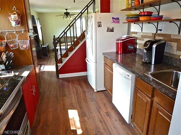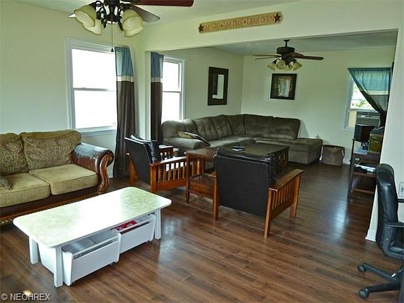 Vinyl sided Cape on a .25 acre lot that is privacy fenced, the first level of the home was remodeled in 2011, fresh paint, spacious living room, laminate flooring (new in 2011),all appliances stay including washer and dryer, two bedrooms up, new siding and gutters in 2014, new roof in 2014, new windows in 2010, window A/C units stay, couple of patios, one car att. garage, home warranty too.