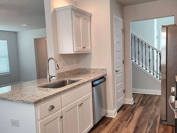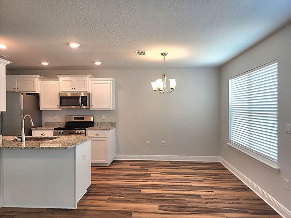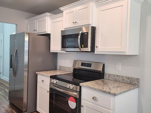 This stunning brand-new, two-story home is nestled in a quiet cul-de-sac, right next to a park with scenic walking trails, and is conveniently located near the bases. Designed to offer spacious bedrooms and ample baths to meet all your needs. The front of the home features an inviting all-brick porch, and as you step inside, a beautiful black iron and wood banister guides you upstairs. The modern kitchen boasts plenty of cabinet space and sleek granite countertops, flowing into a bright dining area with large windows overlooking the backyard. The open-concept living room provides a warm, spacious atmosphere, perfect for family gatherings. A half-bath and finished garage with detailed baseboard molding add extra convenience. Upstairs, you'll find two generous bedrooms with large closets, while the oversized master suite comfortably fits a king bed, nightstands, and additional furniture, leaving room to spare. This home offers style, space, and comfort, with everything you need just steps away! Pets allowed with owner approval. $75 App fee per adult, half off for military. Subject to credit check, background check, employment verification, and rental verification. CERTIFIED Funds required for move in!