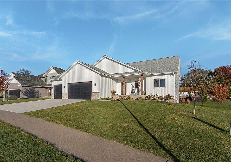 Just steps from the Crow River, this stunning 2023-built rambler blends modern design with everyday comfort. Featuring 4 bedrooms and 3 bathrooms, this home offers an open-concept floor plan with vaulted ceilings that create a spacious, welcoming feel.
