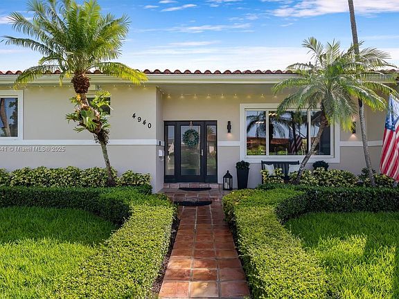 A true blend of sophistication & tropical serenity, this 3BD/2.5BA home w/ additional den & A/C garage offers resort-style living in a lush, private backyard oasis. Entertain effortlessly w/ a heated saline pool, travertine floors w/ turf accents, gas fire pit, & fully equipped outdoor kitchen framed by Chicago brick columns. The chef’s kitchen boasts quartz countertops, wood cabinetry, butcher block island, gas range, & wine cooler—designed for both beauty & function. Impact windows, 2 A/C units, & a whole-house natural gas generator offer year-round comfort. A self-sustaining aquarium adds a tranquil touch. Inviting layout includes florida room, family room, & split-bedroom design for added flow & privacy. Prime location near top schools, shopping, & highway!