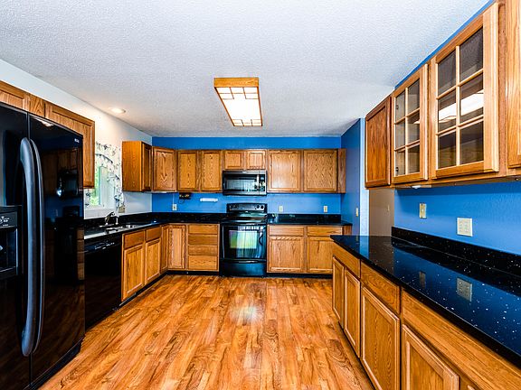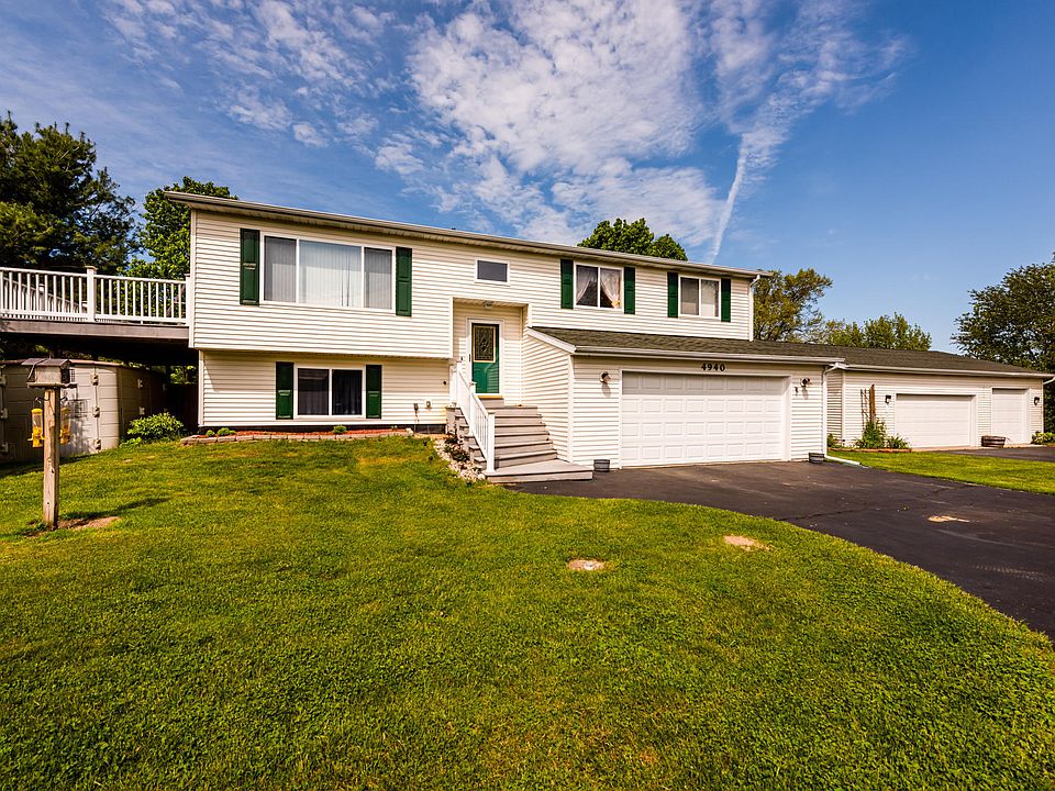 Beautifully maintained 4 bedroom 2 bathroom home. This features all black appliances in an eat in kitchen. From the dining area you can access the back yard and gorgeous view of the property through the sliding glass door. Throughout the home, there is updated flooring, paint and almost new major appliances such as furnace, Central AC and a water softener. In the lower level of the home, you'll love the family room, bedroom and the private patio with access to the back yard and fire pit. Outside, in addition to the attached 2 car garage, there is a detached 3 car garage that is heated and equipped with AC. There is an enclosed carport, perfect for lawn equipment and small tractors. Additionally there is an enclosed storage area in the lower patio. You don't want to miss this one!!!!