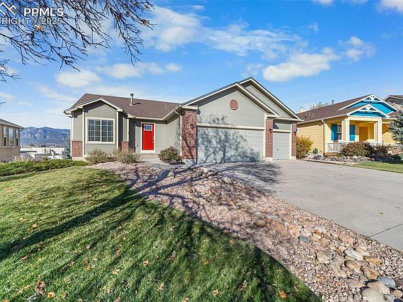 This renovated Ranch offers main floor living, a 3-car garage, and two walkouts to enjoy the amazing views of Pikes Peak! This home sits on a quiet dead-end street surrounded by mature trees in a well-kept neighborhood, with an added layer of security with a private road with controlled access behind the property. Inside, you’ll find a bright, open floor plan with a great room with new carpeting and large windows, perfect for entertaining. The main floor walkout showcases the unobstructed mountain views. The kitchen boasts ample counter space, a breakfast bar, and a separate dining area with a bay window. The open kitchen also features updated appliances, a beautiful backsplash, and an under counter sink that looks out to the front range. The primary bedroom includes two large closets and a private ensuite with a luxury vanity. The two additional bedrooms on the main floor are ideal for an office or guest room, and the main bath is a complete full bath. Downstairs, enjoy an extended family room with large egress windows that create a bright and open atmosphere. The layout allows for endless options; your dream pool hall, game room, theater or just deep couch sitting! There is also a spacious laundry room with a washer and dryer, and the second walkout which leads to a beautifully landscaped oasis with a deck and flagstone walkway. Additionally, the basement has two large rooms both with large closets and a shared full four-piece bathroom! Don't miss out on this amazing home with unmatched views!