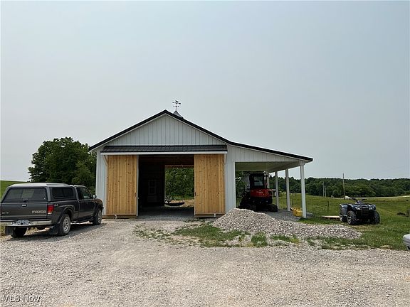 This newly built six-bedroom, four-and-a-half-bath home is nestled on a picturesque 32-acre property in Monroe County, Ohio. Designed with families in mind, it perfectly blends luxury finishes with practical comforts, offering the best of both country living and modern conveniences. The main floor is spacious, featuring hardwood floors and stunning views through the windows. The kitchen boasts professional-grade appliances and custom-built cabinets. From the moment you walk in and see the beautiful oak staircase, the home's attention to detail is evident.