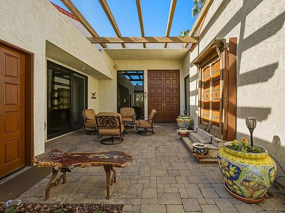 Nestled under the majestic Santa Rosa Mountains, across from the iconic La Quinta Resort, inside the gates of the historic La Quinta Country Club--and just a bike ride away from charming Old Town La Quinta--can you ask for a better location? This meticulously cared-for 3 bedroom, 3 bath residence is a spacious, comforting DELIGHT, showcasing quality and solid workmanship throughout.At nearly 3,000 square feet, it boasts soaring wood-vaulted ceilings and floor-to-ceiling windows that capture stunning mountain views. The den features parquet flooring and rich built-in cabinetry, adding warmth and character. The kitchen offers newer cabinets, with stainless appliances, island and granite countertops. A breakfast nook plus formal dining room, a large and highly functional laundry room, and two private courtyards further enhance the feel of a true home.Comes partly furnished with exquisite, high-quality pieces curated for both style and comfort. Additional upgrades include two new 5-ton AC units, a new tankless hot water heater, and a pristine, generous 2-car plus golf-cart garage.This is one you MUST SEE!