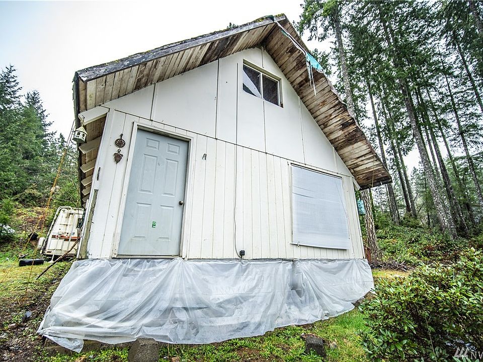 This amazing opportunity fixer, A frame cabin, located in the Trails End community is perfect for anyone willing to put some sweat equity into it. This charming cabin features a loft Master Bedroom, open concept living, dining, kitchen area, wood stove, full bath and a utility room with washer/dryer on .3 acre, feels like a secluded cabin while maintaining modern amenities. Beach access, nearby lake and other perks are available to the Trails End community.