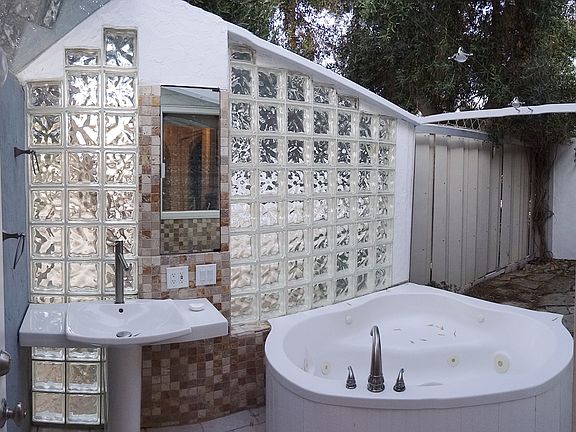 The Mirage boasts three bedrooms, two bathrooms and large office. The custom concrete counter kitchen, artsy living room, and dining area are ideal for classy gatherings. One-bathroom spills outdoors into a grotto space with a large tub, so you can enjoy the outdoors and still be inside the house.