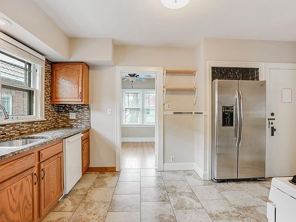Original hardwood floors, natural stone countertops, porcelain tile floors in bathroom and kitchen. Formal dining room with built-ins, plenty of windows and natural light.