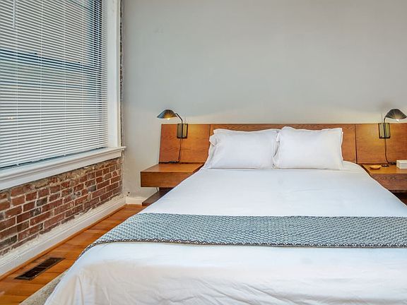 Ornate historic detailsSleek granite countertopsModern stainless steel appliancesExposed brickOriginal wood floors