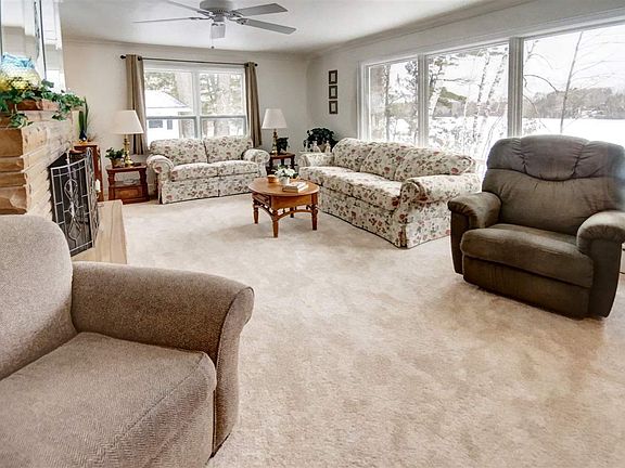 Check out this year-round gem of a property on the Spread Eagle Chain. 110+/- ft. of sand frontage on West Lake, this two bed, two bath home is bright and airy with outstanding views of the Chain. The house has two bedrooms and a full bath on the main floor, an eat-in kitchen and a large living room with big picture window. The walk-out lower level hosts a huge family room, with plenty of room for overnight guests, a full bathroom with shower, a summer kitchen to facilitate waterfront cook-outs, full laundry room and plenty of storage space. There is a concrete patio facing the water, a hot tub included with the sale, cement stairs leading to the water, a boat house, a permanent dock and two sheds for storage. The property also includes a well-tended roadside yard, perennial garden and a two-car garage with a workshop. All appliances are included and most furnishings will be too. Pack your toothbrush and move right in! House is fully ready to occupy following a few days to gather personal items, upon purchase. Recently refurbished with the following new items: Furnace/boiler, carpeting (up & down), tiling in kitchen, upstairs bath floor, downstairs bath shower stall. Interior has been freshly painted. Included: washer and dryer, two refrigerators, two stoves (One single oven & one double oven), and upright freezer. Garage includes a insulated shop and most of the tools will stay including a compressor, and a Ariens Snowblower.