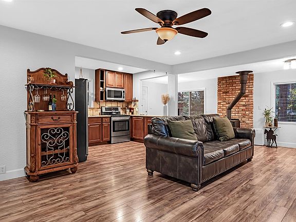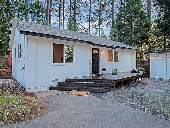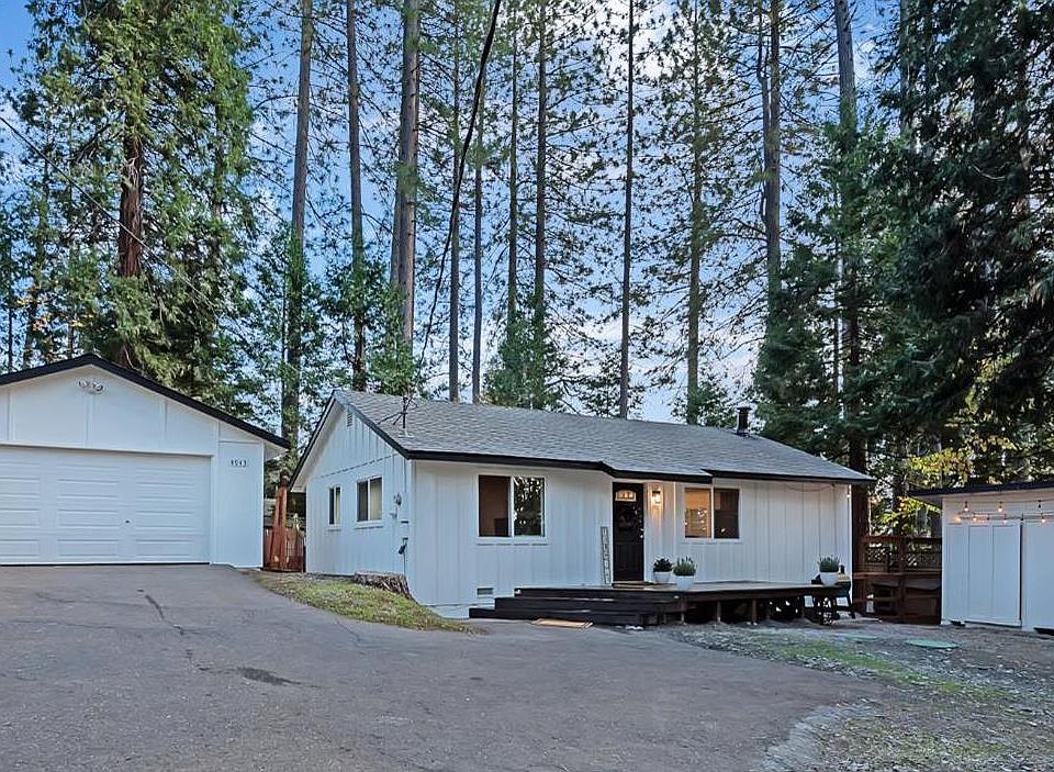 Welcome to 4943 Golden St, the charming retreat that proves even in this price range you can have it all. This updated 2-bed picture perfect home in Sly Park Hills sits on a spacious .29-acre lot just seconds from Sly Park Lake, giving you instant access to hiking, fishing, kayaking, and every outdoor adventure you have been craving. This cute place is move-in ready, with an open-concept interior, warm wood-stove vibes, and a freshly updated exterior that pops beautifully against the pines. A paved easy to maneuver driveway leads to your oversized detached garage plus tons of extra parking and a large woodshed, giving you the kind of storage and workspace rarely found at this price point. Comcast high-speed internet means you can live the mountain life without sacrificing modern connectivity. Outside, you'll love the fenced dog area, separate fenced garden space, and plenty of room to expand your outdoor living dreams. Whether you're downsizing, escaping the city, or scooping up the perfect getaway near Sly Park Lake, this one delivers big comfort, big value, and big lifestyle. Don't sleep on Golden St.