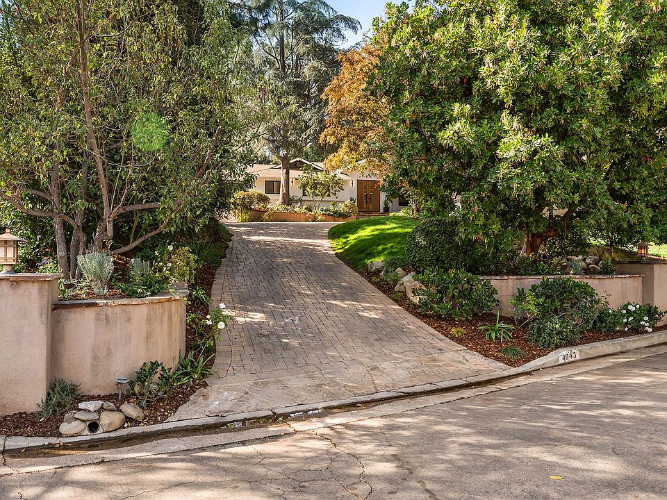 Nestled off the street in a highly desirable neighborhood south of Ventura, this custom-built, single-story classic sits on close to half a wooded acre, offering a uniquely tranquil and private estate that perfectly matches modern conveniences with the charm of a traditional California-style home. The beautifully landscaped grounds provide a lush outdoor oasis with a grassy lawn, a large brick patio, and a pool with a waterfall, ideal for entertaining or relaxing; French doors in the primary suite, living room, and family room create seamless indoor-outdoor living. Inside, the four-bedroom, four-bathroom layout is both spacious and functional, featuring new hardwood floors throughout the main living areas, a new A.C. unit (2023), and a family room accentuated by a beamed ceiling and a stone fireplace. The newly updated gourmet kitchen boasts high-end appliances, quartz counters, and a seating area, while the serene primary suite is a true retreat with an oversized shower and a luxurious spa tub.