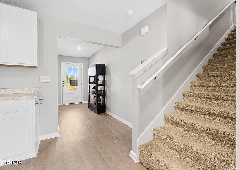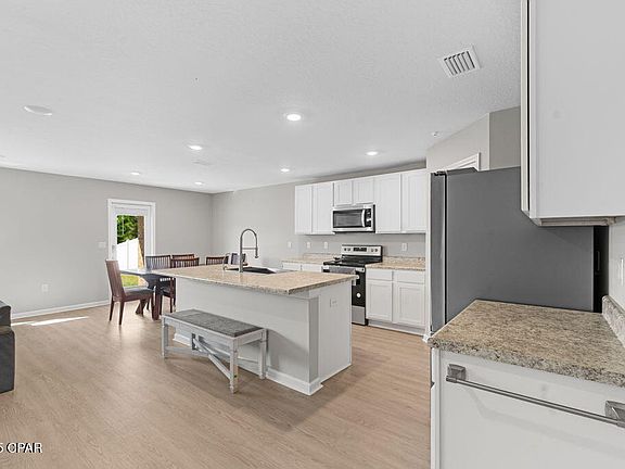Currently Under Contract taking backup offers Welcome to 4944 Conner Ln in Panama City, FL a beautiful Hayden floor plan built in 2022, offering 5 bedrooms, 3 bathrooms, and 2,626 sq ft of well-designed living space. The open-concept main floor features a spacious kitchen with white cabinetry, stainless steel appliances, a walk-in pantry, and a large island that flows seamlessly into the living and dining areas, perfect for entertaining or family gatherings. Vinyl plank flooring runs through the main living spaces, while carpeted bedrooms add warmth and comfort. The current owners have taken incredible care of this home and recently invested nearly $10,000 in brand-new paint throughout, making it truly move-in ready. The primary suite offers two walk-in closets, dual vanities, and a walk-in shower, while the additional bedrooms are generously sized with plenty of natural light. Upstairs, a versatile flex room provides the perfect space for a play area, home office, media room, or anything your heart desires, while a front room on the main level can be used for formal dining or as an additional flexible space to suit your needs. A fully fenced yard adds privacy and space for outdoor enjoyment, while practical touches include a laundry room, central air, a 2-car garage, and a covered front porch. Located in the sought-after Liberty community, residents enjoy incredible amenities including a 7,500 sq ft center with a fitness facility, outdoor kitchen, two pools, basketball and pickleball courts, a splash pad, and playground. With convenient access to shopping, dining, hospitals, and just 25 minutes to Tyndall Air Force Base, this well-cared-for home combines modern design, comfort, and location ready for its new owners to move right in!