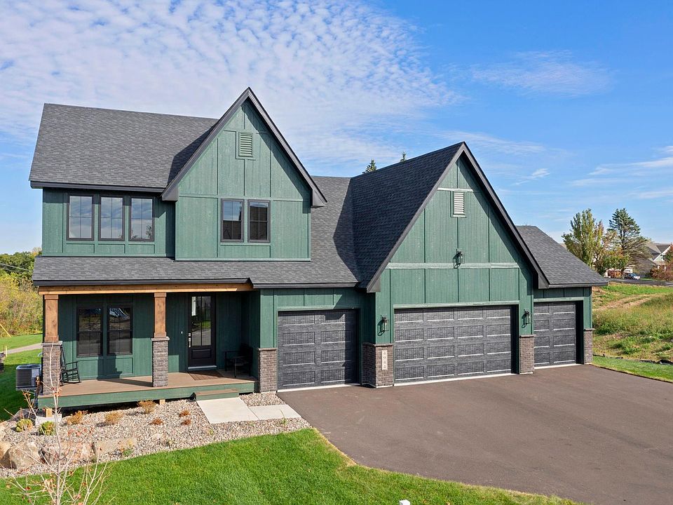 Custom-built, Two-story home by Stone Cottage Construction in Parkside Circle, Eagan! The Maplewood III offers an open-concept main floor with stunning White Oak hardwoods, a beautiful kitchen with center island, soft-close cabinets, quartz counters & a walk-in pantry with built-in shelving. Adjacent great room with gas fireplace create a warm, inviting space. Don’t miss the screened porch with EZ Screen windows & TimberTech maintenance-free decking. Main floor also features a dedicated office and half bath for convenience. Up stairs you will find the spacious primary suite with tray ceiling, walk-in closet, & spa-like ensuite with tiled walk-in shower, soaker tub, dual quartz vanity & private toilet room. Three additional bedrooms & full bath are also on upper level. The finished lower level includes a large family room, 5th bedroom, ¾ bath & tons of natural light and additional storage. Andersen Windows throughout. Gorgeous curb appeal with maintenance-free front porch, 4-car garage, irrigation, and landscaping—all on a prime lot in a desirable neighborhood!. Stone Cottage is a custom builder with various options. Model Hours: 3-6pm on Fridays, 11-4pm on Saturdays & Sundays.