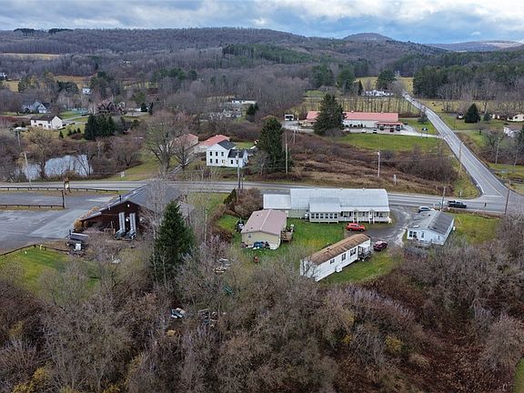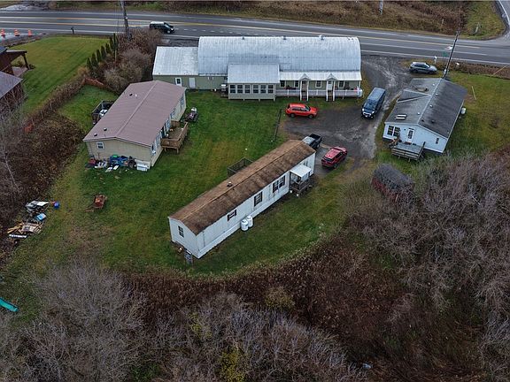 The main building houses 3 apartments (2 apartments have 2 bedrooms, 1 bath), 1 apartment includes 1 bedroom, 1 bath. 2 car garage, 1 commercial space with 1/2 bath. Tons of walk-up attic storage!! Located behind the main building is a 1 single-wide including 2 bedrooms, 1 bath!! 1 DOUBLE-WIDE including 3 bedrooms, 2 baths, Open large kitchen, dining room and living room combo, back deck. 1 privately owned trailer and shed (NOT INCLUDED IN SALE). This trailer pays a land lease. All leases are in place until February 2026.