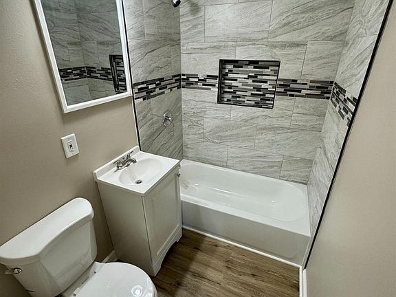 Renovated cape code with 3 bedrooms and 1.5 bathrooms. Kitchen features shaker cabinetry and new stainless steel appliances. Bathrooms are equally as updated, including tiled tub surround and shower niche. 1 bedroom on the main floor along with a bathroom. Upstairs has 2 good size bedrooms. Basement has a recreational area for all your entertaining.