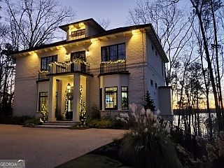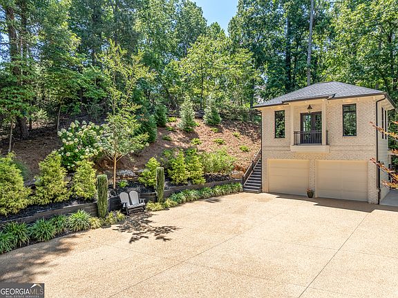 Live the ultimate lake life in this exquisite custom-built one of a kind like new home. Boasting Bald Ridge Creek location with a single slip private dock on year-round deep water with two jet-ski lifts. Set on a gently sloping lot with a flat back yard, the home offers panoramic sunset lake views from all 3 levels of luxury living. This lot is surrounded by privacy. Exceptional outdoor living with an oversized open porch and two covered porches. Stone fire pit and patio that flows seamlessly toward the dock path. Crafted with three sides custom brick and a separate two car garage with ready to finish executive office or separate guest quarters. This head turning residence impresses from the moment you arrive after the protective 300 foot driveway with landscaping to perfection. Awesome pebble rock motor court for those lake parties and family gatherings. This is a five out of five: location, great water, ample parking, storage and exquisite like new home! Upon entering through the 9 foot aluminum clad statement doors at the first floor open plan dream home. Five 5 x10 foot picture windows flank the modern gas fireplace surrounded by gorgeous book matched porcelain slabs. Over 13 foot high ceilings complement the 10 1/4 inch wide, 10 foot long, oil finished hardwood floors. You will notice the LED lit spiral staircase for secondary access to the 1200 S.F. Master Suite. The kitchen boasts modern, glossy white, frameless cabinets with oversized porcelain island including double waterfalls. The matching over height porcelain slab backsplash with pot filler and custom down lighting is world class. The motorized cabinets, panelized appliances, including ice maker and push to open Frigidaire are rarely found in custom built homes. Finishing the main living space is the walk-in pantry and open dining room with coffered ceiling, crystal chandelier and huge picture window to pure serenity. Designed for multi-level entertaining, the finished terrace level is a dream complete with a large living space. Two bedrooms and two full baths and a storage room await. A flat backyard, firepit & dock path from the terrace level make this secluded space a dream. The over 1200 square foot master suite on the third floor is exquisite. Oversized closet, laundry room, breakfast kitchen with sink and refrigerator / freezer drawers included. A desk area overlooking the front courtyard is perfect for seclusion. Front and lake facing porches. Master bath boasts floor to ceiling Italian marble, oversized stone soaker tub, his and her vanities, curbless shower with secondary rain head and wall hung toilet. A separate 2-car garage offers potential for an income-generating apartment or private guest quarters. Professionally landscaped grounds include year round blooms, rock waterfall and irrigation system. Approved side setback reduction allows for a future pool to elevate the estate feel. This one-of-a-kind Lake Lanier estate blends luxury, comfort, and unbeatable lakefront access-designed for those who want to enjoy every moment of lake living. Discover the unparalleled lifestyle that comes with living on the breathtaking shores of Lake Lanier, where every day feels like a vacation. This stunning lake is not just a picturesque backdrop. With your boat docked just steps from your home, you can effortlessly cruise to popular lakeside restaurants for a dinner, where you can enjoy lifestyle music with your friends and family. Embrace a lifestyle filled with sun-soaked days spent on the water, cozy evenings by the firepit, and a close knit community that cherishes the beauty of nature. Living on Lanier means not just finding a home, but discovering a vibrant way of life that celebrates both adventure and tranquility. This truly is the perfect place to call home.