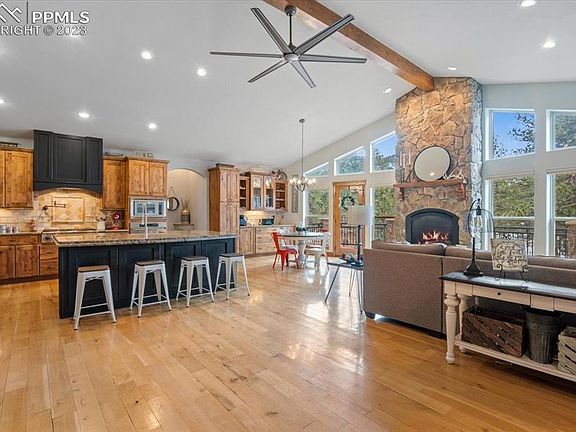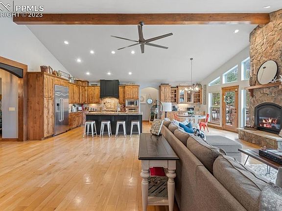 This is the complete mountain luxury package you've been waiting on! This magnificent custom ranch style home features 4400+/- sq ft of finished living space, 3 fireplaces and is situated on almost 1 acre in the beautiful Perry Park! Combining comfort and class, this home features high end finishes throughout, wood floors and grand vaulted ceilings with natural wood beams. Plenty of room for everyone with 5 spacious bedrooms and 5 bathrooms. The gourmet kitchen is your dream come true! Complete with slab granite counters, huge island, stainless appliances, Dacor gas cook top, eating nook, breakfast bar and ample cabinet space. You'll love the wide open living space that effortlessly connects the great room with kitchen and eating areas for easy entertaining. Large primary suite includes a fireplace, access to the covered deck, a walk in closet and a 5-piece bath complete with jetted tub and separate walk-in shower. Escape to the finished walk out basement with large family room with fireplace plus a web bar complete with fridge, ice maker and dishwasher. Two additional large bedrooms in the basement are connected with a jack-and-jill bath. You'll feel like you live in a park each time you come home. Surrounded by mature trees and a stunning natural red rock formation. The fenced backyard is a private oasis complete with professional landscaping, custom patio and firepit area. Don't miss your chance at privacy in the most serene setting. No HOA - this is a covenant only community.