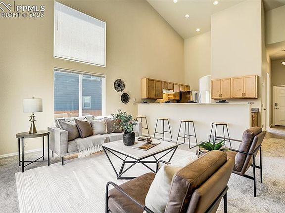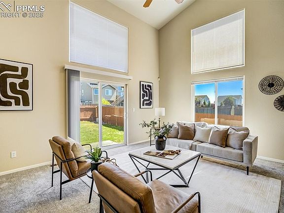 This one has high ceilings and will definitely meet your high expectations! Step through the impressive front door and into a home that wastes no time showing off. The two-story ceilings makes a grand entrance you won't forget. The main-level Primary Suite is a true retreat with space to spread out, while upstairs you’ll find two bedrooms and a loft ready to be transformed into a reading nook, homework hub, or secret hideout. All bedrooms have walk-in closet space. Love to cook? The open kitchen delivers plenty of counter space, a generous pantry, and a perfect flow to the dining and living areas—ideal for entertaining or midnight snacking. And yes, there’s an unfinished basement—a blank canvas waiting for your home theater, gym, or guest suite dreams. Outside, enjoy a backyard built for BBQs, four-legged friends, and Colorado sunsets. Best of all? This home is tucked into a prime Colorado Springs location, close to shopping, trails, and every military base in town. New carpet and new interior paint throughout.