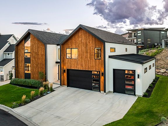 Modern Scandinavian Elegance on Traverse Mountain! Perched atop the prestigious Vialetto community, this Scandinavian Modern masterpiece redefines luxury living with breathtaking views of Silicon Slopes and Utah Lake. Every detail of this custom- designed residence reflects unparalleled craftsmanship and cutting-edge style. Step into the awe-inspiring great room, where 25-foot ceilings, exposed steel beams, and ambient LED lighting create a striking first impression. A floating staircase serves as a centerpiece, seamlessly connecting the open-concept living spaces. The gourmet kitchen is both functional and stunning, boasting commercial-grade appliances, Quartzite countertops, and a hidden Butler's pantry - perfect for effortless entertaining. The two-story family room, anchored by a Venetian plaster fireplace and rich wood flooring, offers a panoramic backdrop of city lights and mountain vistas. The main level is home to a serene Owner's Retreat, complete with plush carpeting, an expansive walk-in closet, and an adjoining laundry room for ultimate convenience. The spa-like en suite bath features a custom walk-in shower with Brizo brass fixtures, bespoke cabinetry, and porcelain countertops designed for relaxation and indulgence. Upstairs, a lofted office and children's lounge overlook the lower level, enhancing the home's airy design. Two additional bedrooms, a stylish bathroom, and a spacious entertaining area with a walkout deck provide both comfort and stunning valley views. The newly finished basement takes entertainment to the next level with a sleek, moody aesthetic. A kitchenette equipped with a Fisher & Paykel double-drawer dishwasher, ambient lighting, and a custom backsplash complements a built-in entertainment center with a hidden door leading to extra storage. This level also includes two bedrooms and bathrooms, offering a private retreat for guests or family members. The home's exterior is equally impressive, with distinctive modern design, lush landscaping, and breathtaking views from every vantage point. Located moments from upscale shopping, fine dining, and convenient freeway access, this architectural gem combines the serenity of mountain living with the vibrancy of city life. Don't miss the opportunity to own this one-of-a-kind treasure on Traverse Mountain.