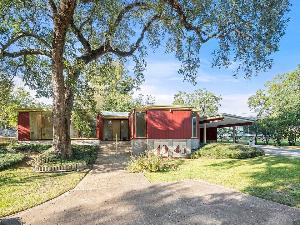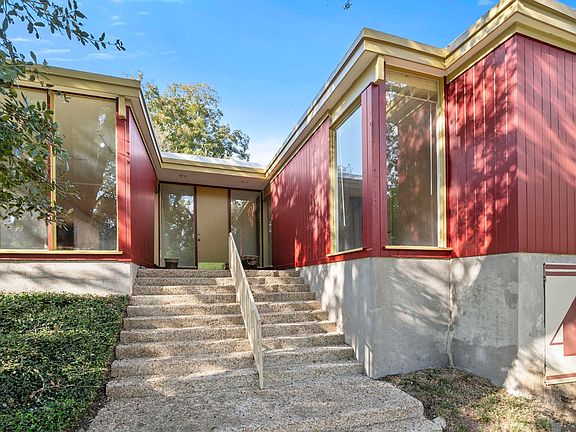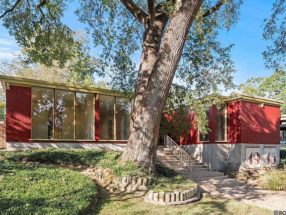 This is the Mid Century Modern in a private location that you have been waiting for! Lots of full pane windows, 2 wood burning fireplaces set into curved brick walls, tankless water heater and a large Primary with fireplace, lots of closets and built ins and en suite bath with sunken tub. There are endless possibilities for this home in University Hills! Enjoy the 20x20 square backyard pool. The exterior has been freshly soft washed and painted and there is a new $33,000 roof. Over the years the seller has done drainage work, widened gutters and added leaf screens and loved this home tremendously! There is a storage room at back of carport and another one in back near the pool and yet more concealed storage behind the house numbers on the front of the home. This home is near the South gates of LSU!
