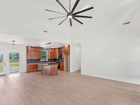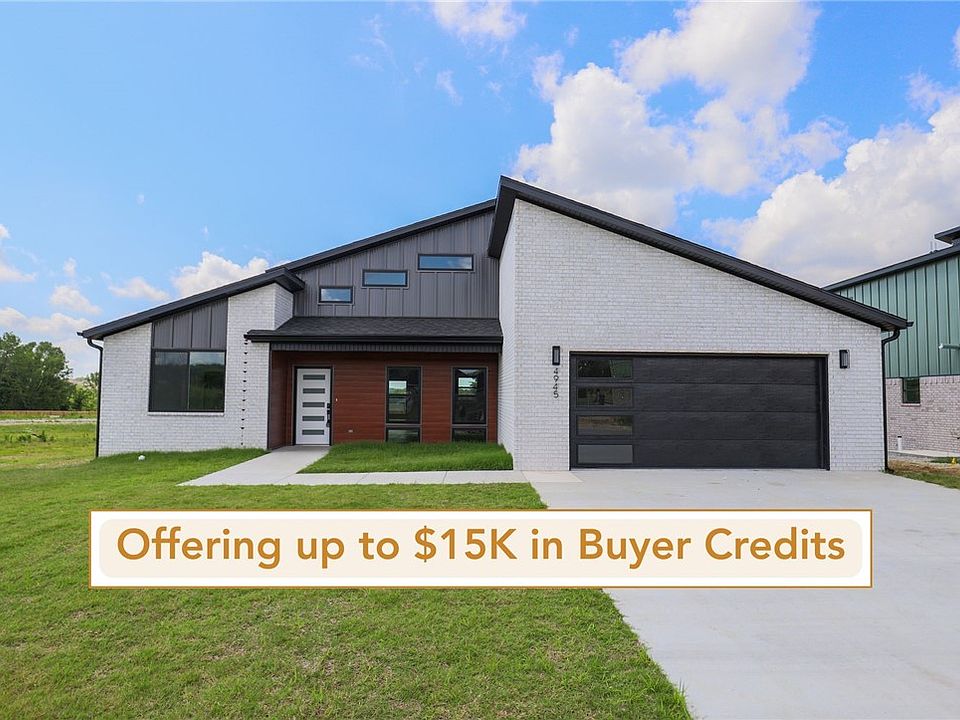 This brand-new residence showcases beautiful brick exterior with maintenance-free metal siding and garage door featuring a stylish window. Inside, luxury vinyl plank flooring flows throughout, complemented by custom cabinetry with quartz countertops and a distinctive butcher block island. Upgraded smart appliances include a pot filler and built-in microwave, while the thoughtful mudroom provides practical storage. The garage features epoxied floors and EV charging capability. Cathedral ceilings create spaciousness, enhanced by LED lighting and mid-century modern fixtures. The master suite includes a walk-in closet and spa-like bathroom with fully tiled shower. Additional highlights include a walk-in pantry, laundry room with butcher block counter, covered back patio with epoxy flooring, ceiling fan, and smart mirrors with adjustable lighting throughout. Builder offering $10k credit toward buyer's closing costs plus another $5k credit with preferred lender!