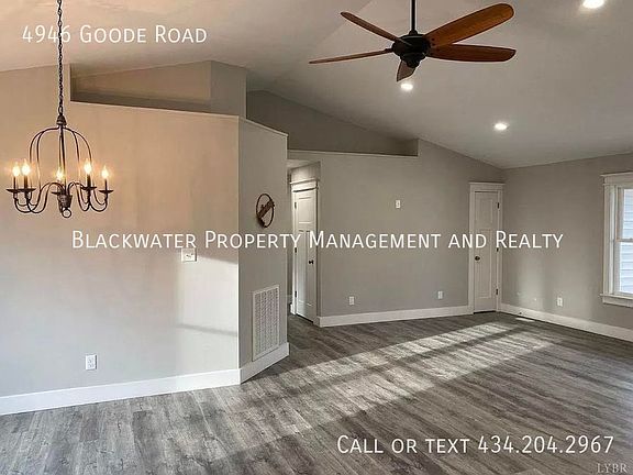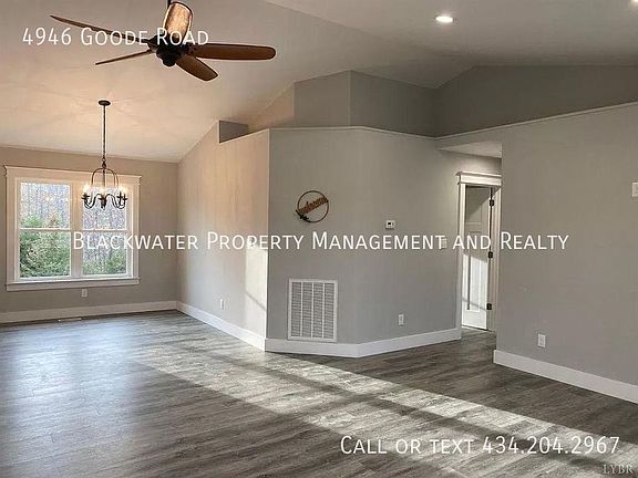 Welcome home to 4946 Goode Road! This beautiful 4 bedroom, 2 bathroom home is move-in ready! Located in Bedford County with quick access to 221 or 460 for all shopping, dining, and convenience needs! This home is located in the JF school district. Walk into the large, open floor plan on the main level, starting in the spacious living room with vaulted ceilings, flowing to the dining area with separate breakfast nook, and lastly the beautiful kitchen featuring granite countertops, stainless steel appliances including range, refrigerator, dishwasher and microwave, open shelving, and pantry/laundry combo with washer/dryer included! Enjoy the views of the large backyard from the covered back porch! Off the kitchen, enjoy the spacious primary bedroom including walk-in closet and en suite bathroom complete with double vanity, custom tile shower, whirlpool bathtub, and separate water closet. The hall bathroom and other three bedrooms are located off of the living room, complete with large closets. Additionally, a full unfinished basement for all of your storage needs rounds out your personal oasis! Tenant responsible for all utilities and yard maintenance. $45 Application Fee Per Person/Guarantor. None