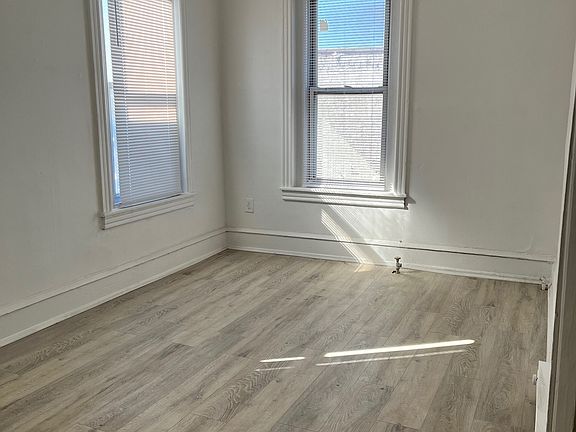 Cozy 1-bedroom, 1-bath apartment on 3rd floor. New kitchen with laminate floor, new cabinets, counter tops and refrigerator. Living/dining area with wood-laminate floor and nice-sized bedroom with new laminate floor and double entry door. Tile bathroom with tub/shower combination and window. Large windows let in lots of light. High ceilings. Close to transportation, houses of worship and shopping . Street parking.