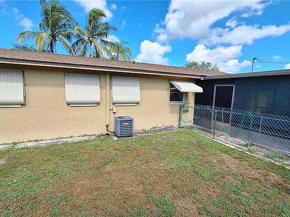 Charming 3-bedroom, 2-bath single-family home located in East Fort Myers. This CBS construction property offers 1,204 sq.ft. of living area with tile floors throughout, a bright open living room, and a screened lanai perfect for relaxing or entertaining. The large fenced backyard features fruit trees, palm trees, and a storage shed, providing plenty of space for family and pets. Roof replaced in May 2025 (permit ROF2025-02412). Conveniently located near schools, shopping, and major roads — ideal as a primary residence or investment opportunity.