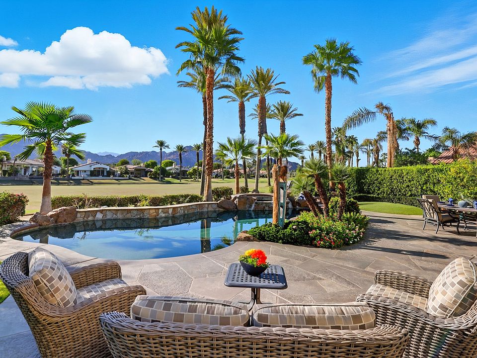 Outside enjoy a private desert oasis with a sparkling pool and spa, a cozy firepit and ample patio space to relax and take in the beautiful lake and fairway views. Perfect for indoor - outdoor living this home embodies the best of desert luxury. Availalbe Nov 1 2025 throughout the 2026 season