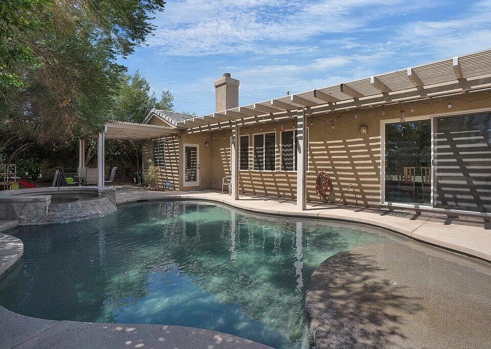 Located in the desirable, guard-gated Indian Palms Country Club, this beautifully maintained home offers resort-style living and even investment potential. With 4 bedrooms and 3 bathrooms, including a detached Casita, it provides the ideal setup for guests, extended family, or lucrative short-term rental income -- especially during festival season. The heart of the home features a huge open-concept living area with a spacious kitchen island seamlessly flowing into the living room, perfect for entertaining. The thoughtful floor plan offers excellent separation of space between the primary suite and the secondary bedrooms, ensuring privacy and comfort. Step outside to your own private desert retreat -- a sparkling in-ground pool and spa, covered seating area, and mature landscaping that enhances privacy and creates the perfect backdrop for outdoor relaxation. Additional highlights include: Over-sized garage with room for recreational toys, tools, and storage, beautifully landscaped lot within a golf course community, access to Indian Palms amenities including golf, tennis, and clubhouse facilities. Whether you're seeking a primary residence, vacation getaway, or high-demand short-term rental, this property offers it all in one of Indio's most sought-after locations. Schedule your private showing today and experience the best of desert living! New owner for the golf course has plans for many updates.