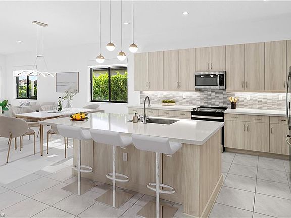 Step into a home with a 5.2% ASSUMABLE MORTGAGE RATE and save BIG!!! Welcome to where chic sophistication meets Florida charm in Maple Ridge of Ave Maria! This stunning 3 bedroom plus den and 2 and a half bath single-family nearly 2,300 Sq. Ft. of living space home, boasts gorgeous tile flooring throughout and is light and bright with tons of natural light. Greetings from the foyer will lead you to the den with elegant French doors to the left and straight to the kitchen and living area. The chef’s kitchen will leave the most discerning chefs pleased with its center island, quartz counters, stainless steel appliances, disposal, and plentiful cabinet and counter space. Flanked by the kitchen, the dining room and living area is oversized with access to the enclosed lanai with beautifully idyllic lake views. The primary bedroom is a true retreat with your double vanity, water closet, gorgeous walk-in shower, and large walk-in California closet. Outside, build the pool of your vision! The 2 remaining guest bedrooms enjoy a shared full bathroom with water closet and double vanity as well. Peace of mind is enhanced with an additional powder room, laundry in residence with laundry tub, 2 car garage, and close proximity to not only the clubhouse but Downtown Ave Maria with shopping and dining at your disposal!