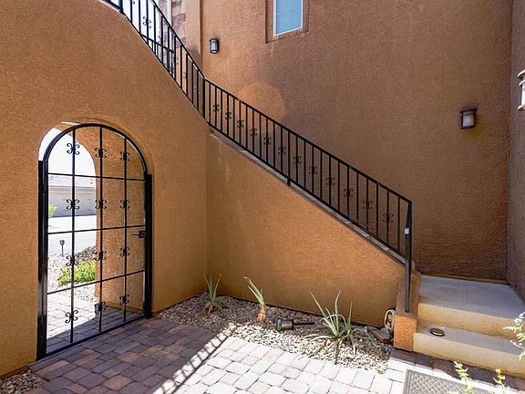 Beautiful, elegant home nestled in a quaint, Northwest gated community; Enter through gated courtyard w/ a spiral staircase to the 2nd floor; Polished tile flooring, soaring windows w/ plenty of natural light & high ceilings for a spacious feel; Formal living room & formal dining room for entertaining on those special occasions & separate family room w/ surround sound & decorative fireplace for relaxing; Chefs kitchen w/ an oversized island, Granite countertops, a huge pantry, breakfast bar, nook, gas cooktop, built in oven, & microwave; 1st floor suite w/ light, cable outlet, walk in closet, deep soaking tub & separate shower; 1st floor den & 1st floor laundry room w/ washer, dryer and cabinets; Large, 40x18, 2nd floor loft room w/ pool table, 1/2 bath, & plenty of space for other activities; Primary suite offers balcony w/ mountain views, large walk in closet, double vanity, deep, soaking tub and spacious separate shower; 2nd floor laundry room off primary suite (no washer or dryer provided); 2nd floor guest bedroom with light, cable outlet, closet and full bath; Other 2 guest bedrooms with lights, cable outlets and closets; Water softener and RO system; Extra storage under the stairs and additional closets; Covered patio backyard w/ volley ball court & gazebo ideal for relaxing & entertaining; 5 car garage with auto doors, storage, entry into the house and 1 EV Charger!