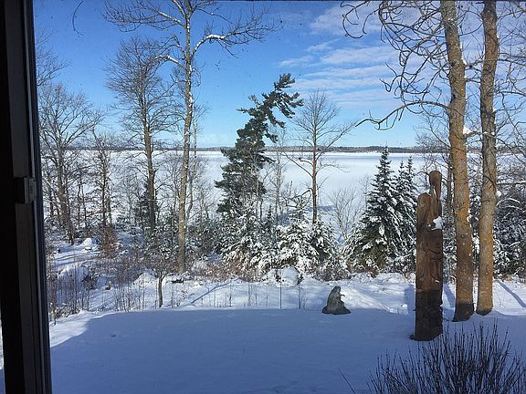 One of a kind lot on a peninsula, overlooking Pelican Lake with 1200 square feet of waterfront. In addition to the 3 +den bedroom home that can sleep up to 10 people, there are 3 garage structures to store your boats, ATVs, snow mobiles, and other vehicles.