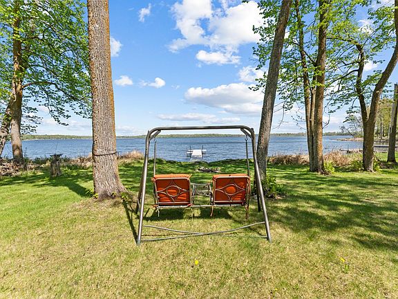 Walk 100' of relaxing, East facing, lakefront via the FLAT backyard! Imagine watching the sunrise with your morning coffee and enjoying the level backyard to fully enjoy the yard for bonfires, games, etc... NO steps to the lake! 60' of dock (newer) allows lots of people to be able to fish! Large deck is great for grilling and the pergola stays with the property. 3 BR on 1 level and 1 in lower level (sheetrocked) allows for sleeping quarters for 9+ people. Newer siding, gutters, draintile, landscaping, furnace and a/c replaced in 2003. Renewal by Andersen windows. Roof replaced on 2019. Lower level is sheetrocked and liveable and needs some finishing touches. The home is liveable year-round and is almost fully furnished ... could be a rental or the perfect retreat for you to enjoy NOW. Also included is the lilypad, boat lift, Paddle boat, Shed and covered storage, chairs, and MORE. Showings start Memorial Day Weekend so let Summer begin!