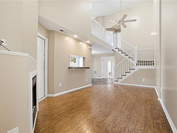 Lakefront end unitFirst-floor primary suiteFamily room with skylightsAttached garageFenced backyard with deckBreakfast barWood flooring