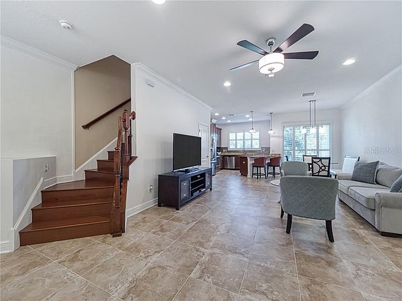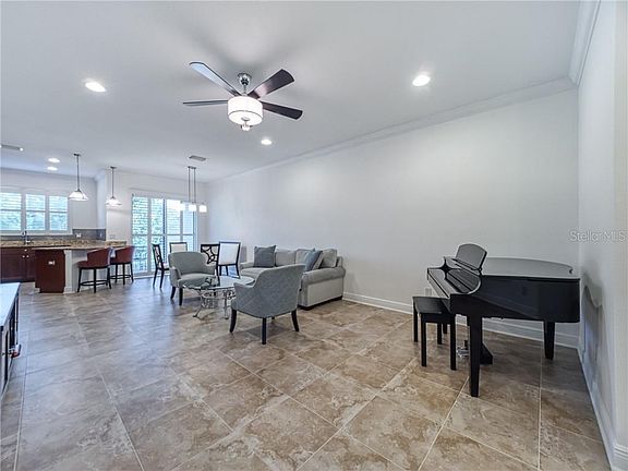 - Interior Features: Master Bedroom Downstairs, Walk-In Closet(s), Crown Molding, Kitchen/Family Room Combo, Living Room/Dining Room Combo, Solid Surface Counters, Window Treatments, Vaulted Ceiling(s), In Wall Pest System, Tray Ceiling(s)