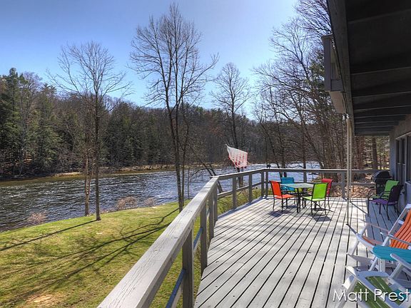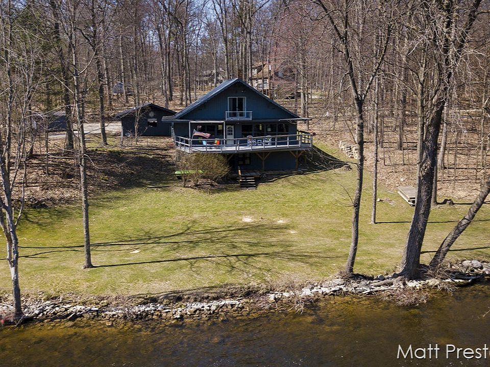 Gorgeous 3 Bedroom, 3 Bath, Chalet Style Home on a Private Double Lot with 191 feet of Frontage on Muskegon River. Incredible Views throughout the home or from the Huge Wrap Around Deck. This home features a Open Floor plan with Large Kitchen and Island, Main Floor Laundry, Master Suite with Private Balcony Overlooking the River and a Walkout Basement. Enjoy Entertaining your Friends and Family from the Rare Flat Yard leading up to the River or Throw in a Tube and Float Down the River. Great Fishing too, with Steelhead, Trout, Bass, Salmon and many more! Add a Deep 2 Stall Garage, Storage Shed, Plenty of Parking including a spot for your Boat, makes this Beautiful Waterfront Home a Must See!!!
