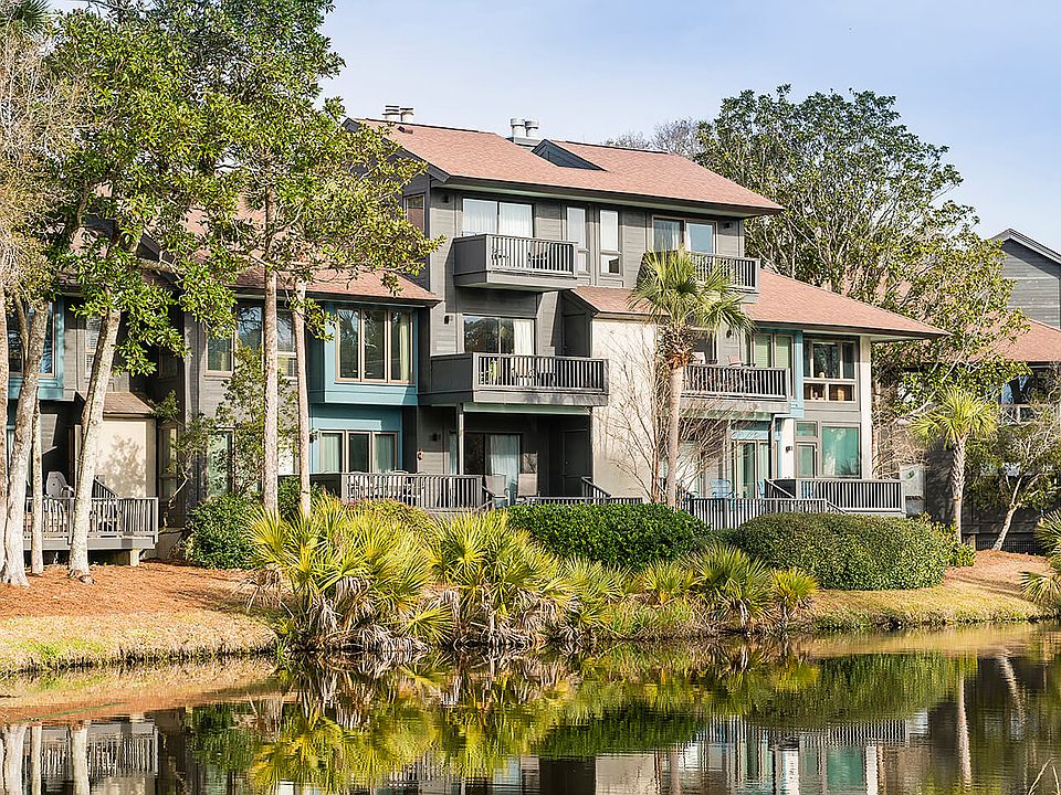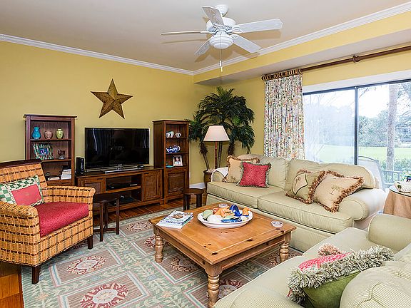 A perfect retreat for Island living, the villa features a large open floor plan that maximizes the surrounding golf and lagoon views through large windows and expansive sliding glass doors to the exterior deck.