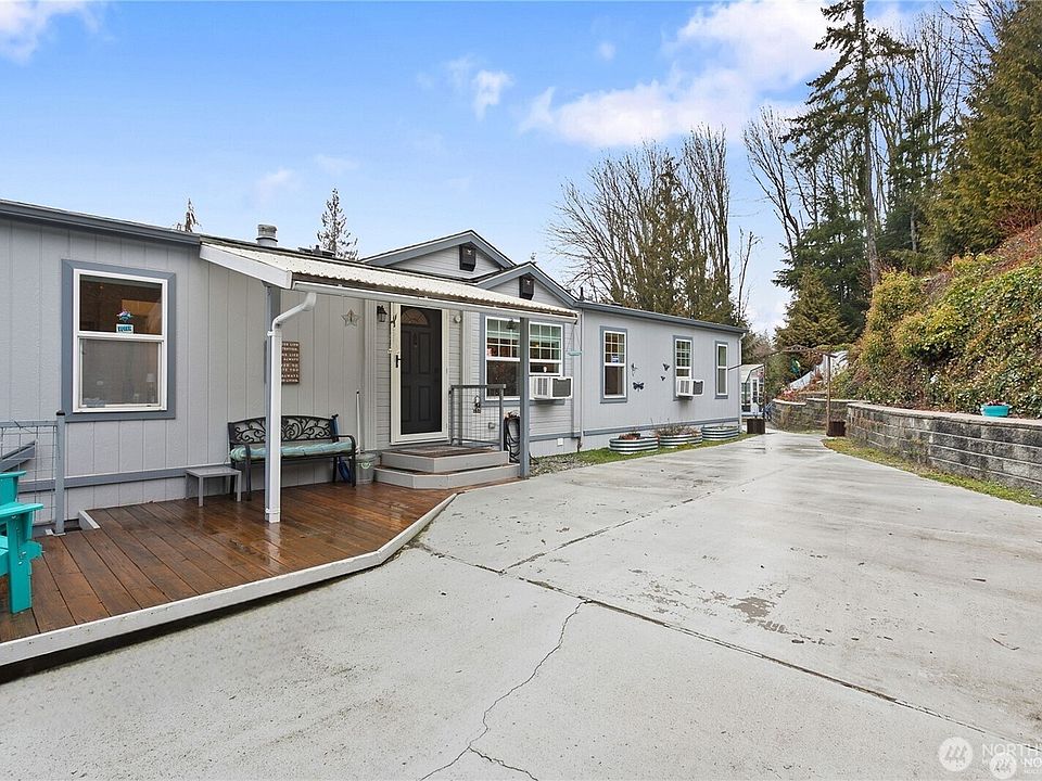 Peaceful living awaits in Lake Padden Estates, a desirable 55+ community with rare land ownership! This immaculate home sits on two spacious lots and offers 3 bedrooms, an office, and 2.75 bathrooms—perfect for comfort and flexibility. The primary suite features a newly remodeled ensuite with a walk-in shower, new tub, and laminate wood flooring. The kitchen has updated flooring, and fixtures have been modernized throughout. Enjoy the outdoors with a covered deck, lush garden, and private greenhouse. The two-car garage includes a 234 sq. ft. finished studio with a fridge and ¾ bath—ideal for guests, hobbies, or a home office. A second driveway offers extra parking and front-door access. Schedule your showing today!