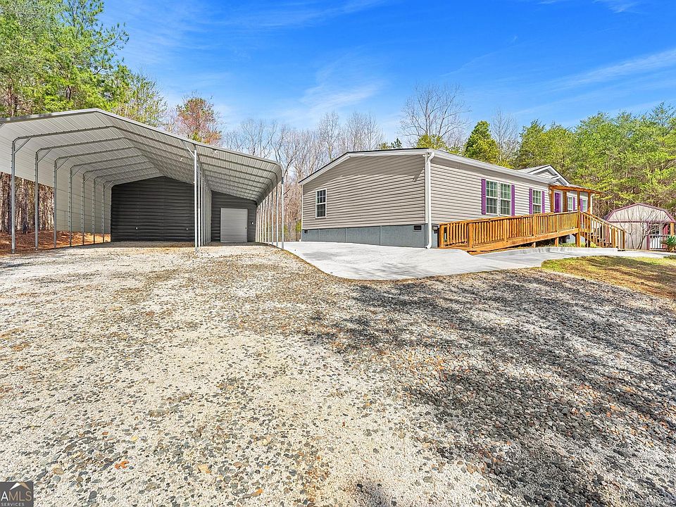 Amazing home on 3.76 acres across the street from Lake Hartwell. The property features a large two stall car-port. that fits an RV, you could also store your lake toys, Boat, Pontoon, Jet Ski's, Cars etc.... There is a large storage area workshop with a roll up door or side entrance. Paved concrete walkways connect everything. There is a separate shed that is insulated and has electricity for all your hobbies. The home has 2 large bedrooms separate full bathrooms. The Primary bath has a large soaking tub and separate shower double vanity and walk in closet and linen cabinet. Second bedroom has two walk in closest's. The living room is large and over sized room for a dining area. Beautiful eat in kitchen, custom cabinetry large island with custom black walnut wood top island, counter tops are a beautiful recycled glass. Stainless steal appliance's and the large oversized side by side stainless steal refrigerator freezer is amazing!!  Truly a dream kitchen! Separate laundry area. Outside has two ramps for easy access, and a covered area and over sized patio for entertaining, large fenced in back yard. There are raised beds for gardening in a separate fenced in area. Easy access to Lake Hartwell with two different boats ramps less than 2 miles away. Call for your easy showing today.