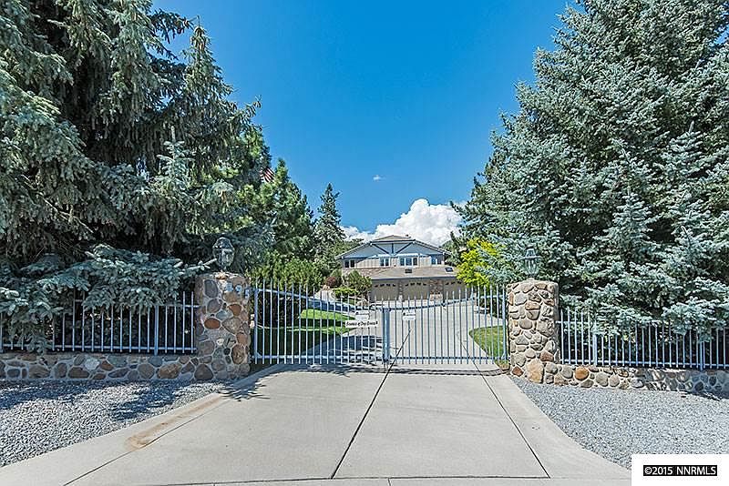 Private, gated estate, custom built surrounded by mountain views, trees, creek sitting on 1.5 acres. Exterior meticulously build and maintained, painted 2 yrs. ago, 50 yr. concrete roof with 3 car garage. Outback Barn perfect for RV. Carport for boat and toys. Sit on the 2 large cover decks and enjoy the peaceful views. Master on the main level with 2nd bedroom and laundry. Downstairs family room has access to decks and yard, 3rd large bedroom and office. Amazing property, well built home nicely landscaped.