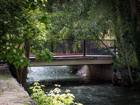 Open your patio doors & bring nature home. Wooded Cottonwood Creek babbles past giving the feeling of seclusion while being only minutes from everything - all of Murray's excellent amenities - library, park, aquatics & recreation centers, & also I-15. This lovely complex also boasts a pool & clubhouse for your use.This would make a great owner occupied or investment property. The fixed monthly $137 covers the pool, clubhouse, grounds maintenance, snow removal and insurance on the building. The HOA also bills for gas, electric, water, sewer and trash monthly. That portion varies from month to month. Animals 20 lbs and under are okay. Pet just needs to be registered with the HOA.