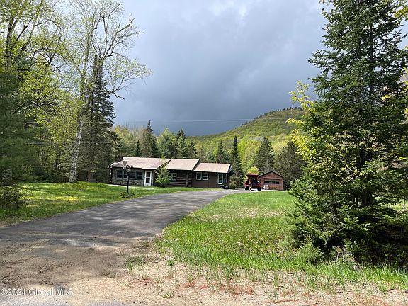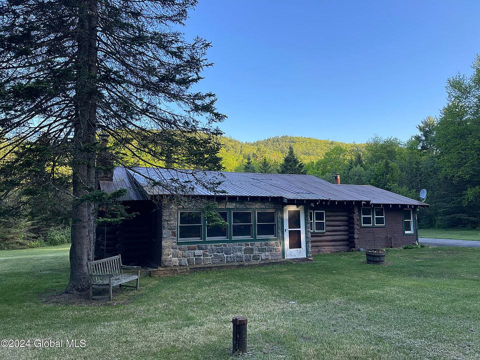 Authentic Adirondack log cabin on 61+ acres with stream, mountain views, ATV trails, bordering almost 600 acres of state land! Second hunter's cabin located on knoll overlooking wide open hardwoods at base of mountain! Amazing acerage w/ montain views! Very quiet country location about 20 minutes to Lake George & Warrensburg. 10 Minutes to Hadley/Luzerne. Great room with maple flooring, wood burning fireplace with stone hearth, and exposed log beams. Kitchen and dining area with Vermont Castings wood stove, family room with built-in wood bar & pine flooring and much much more. Excellent use as a vacation home, hunting Base Camp, AirBnB or Glamping. So many potential uses! Generator hookup.