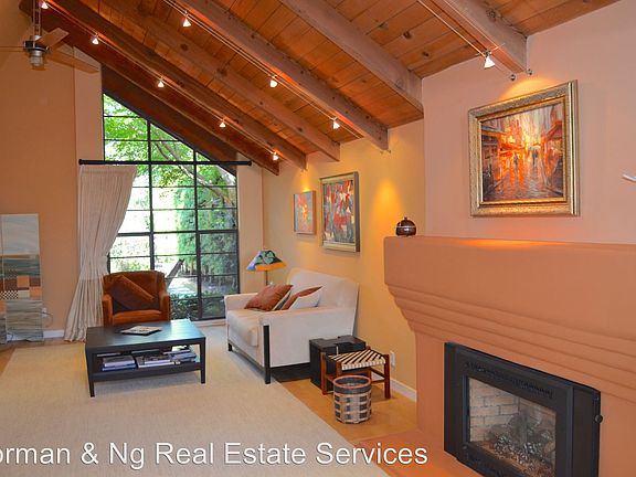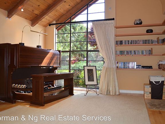 Fully furnished architect-designed home in the North Berkeley hills with cathedral ceilings - Architect-designed home in the North Berkeley hills with cathedral ceilings in living room and all 3 bedrooms. Custom painting on exterior and interior; unique exterior and interior lighting; custom window treatments in place throughout. Most rooms feature built-in shelves or cubby holes for display of art, or storage of books and cds. The house is near-fully furnished. The kitchen, dining room, living room, entrance foyer, and laundry area are furnished. Upstairs, the master bedroom and second bedroom are completely furnished. The third bedroom has two large bookcases, as it was previously used as an office. All bathrooms are furnished with linens, soaps, etc. (RLNE4073093)